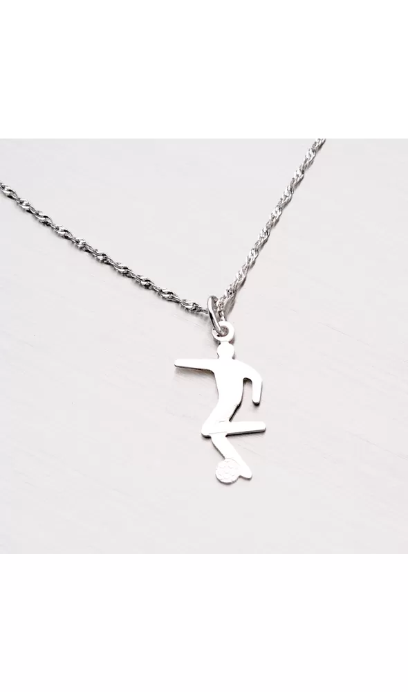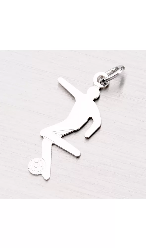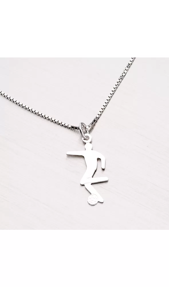Jednoduchý strieborný prívesok v tvare futbalistu, ktorý bude ideálny pre milovníkov futbalu.