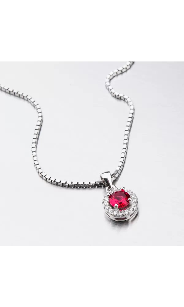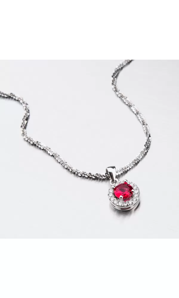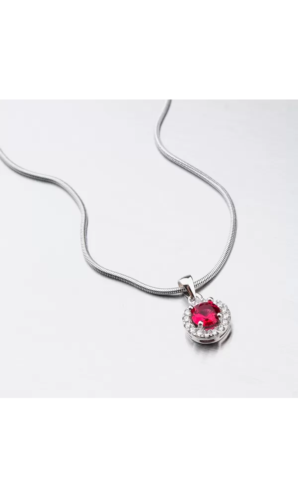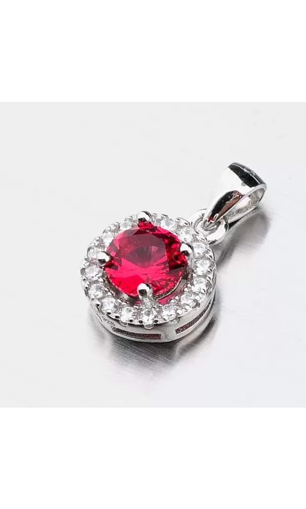 Žiarivý šperk poteší každú ženu. Tento prívesok žiarivý je a to vďaka syntetickému rubínu, ktorý žiari jasne červenou farbou. Okolo syntetického rubínu sú vsadené menšie nemenej žiarivé zirkóny v briliantovom bruse. Prívesok je vyrobený zo striebra o rýdzosti 925/1000 v lesklej povrchovej úprave a povrch prívesku je zušľachtenýrhodiovaním.