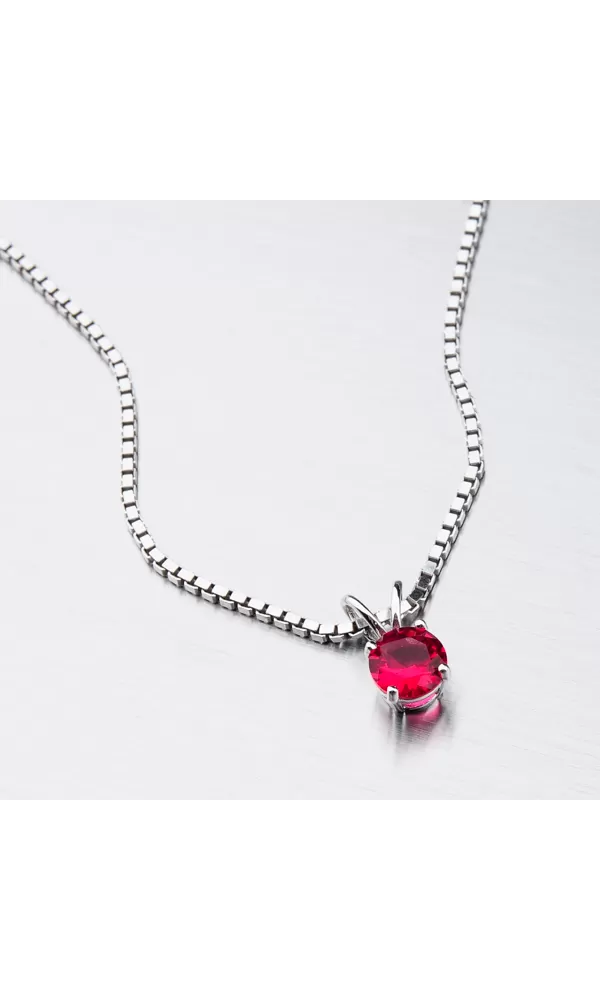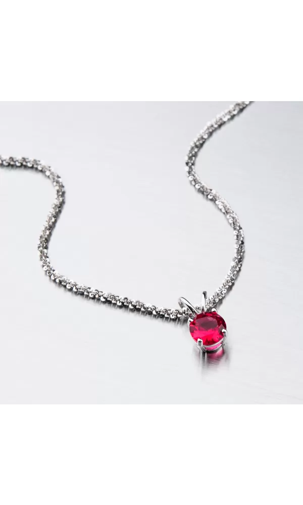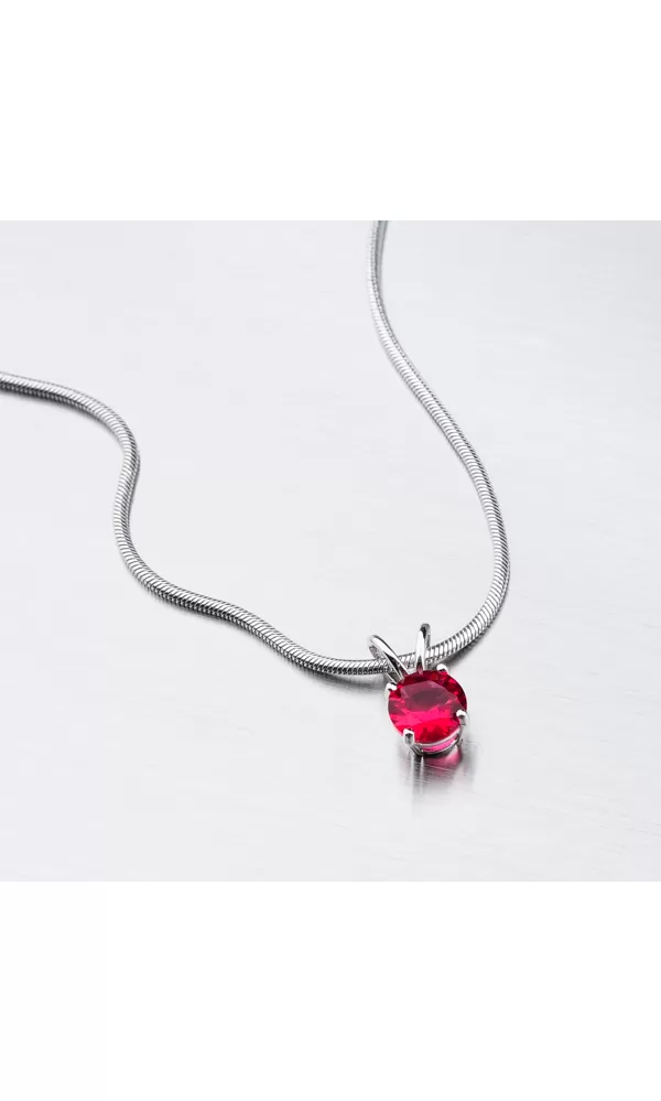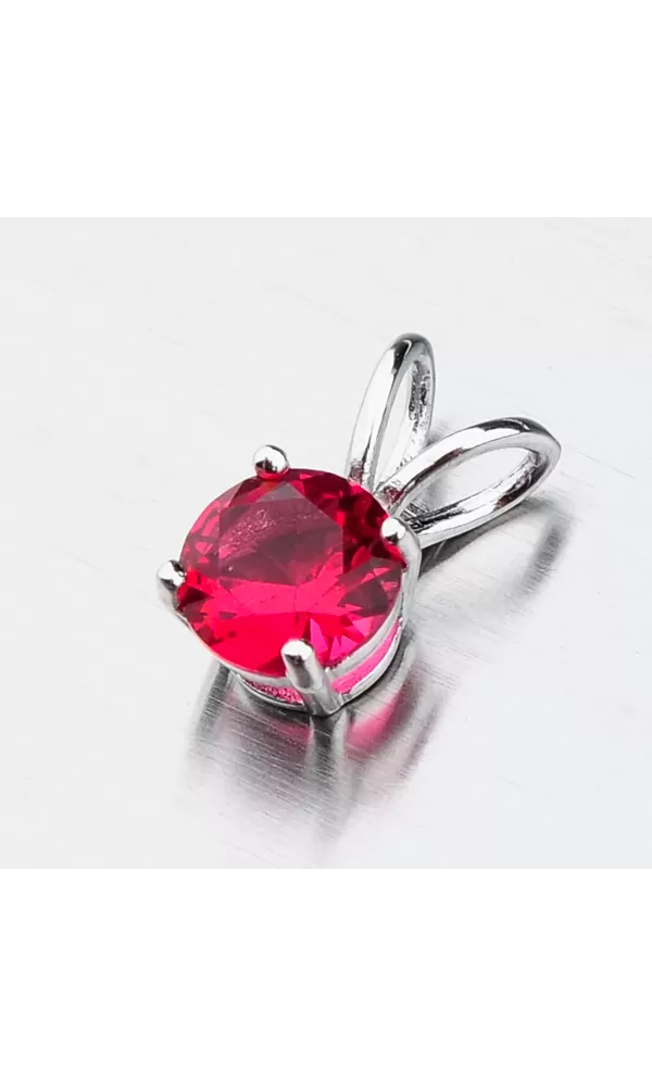 Jemný prívesok zdobí veľký syntetický rubín v briliantovom bruse, ktorý je starostlivo uchytený štyrmi krapnami. Prívesok je vyrobený zo striebra o rýdzosti 925/1000 v lesklej povrchovej úprave a povrch prívesku je zušľachtenýrhodiovaním.