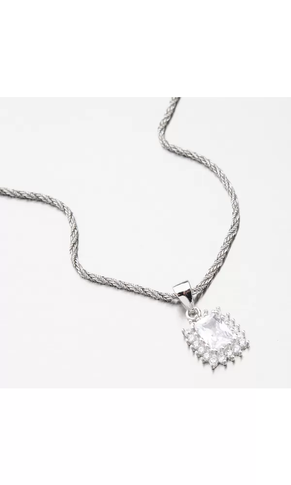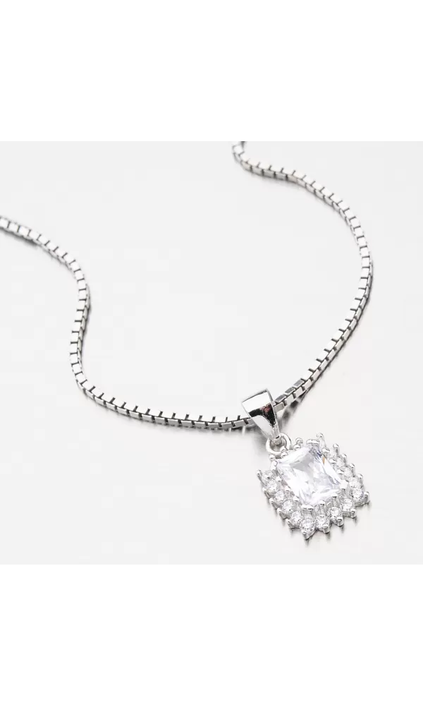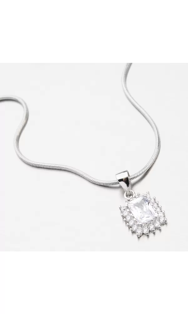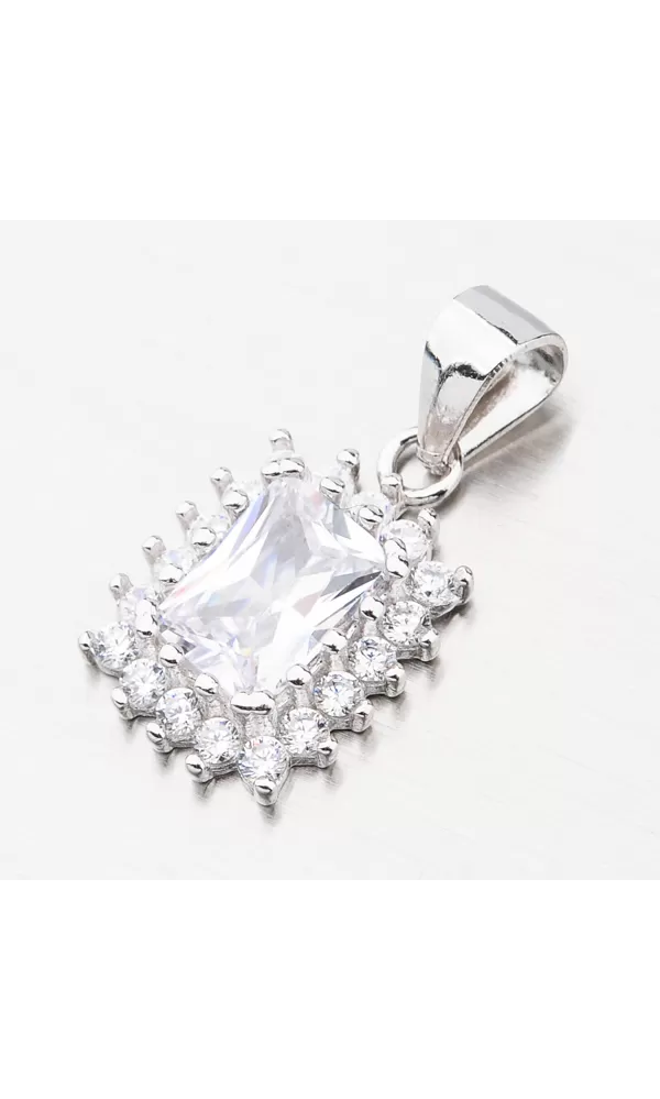 Neuveriteľne žiarivý prívesok vás upúta na prvý pohľad. Prívesku dominuje hranatý zirkón, ktorý je precízne brúsený a starostlivo uchytený krapnami. Okolo hranatého zirkónu sú vsadené zirkóny v briliantovom bruse.