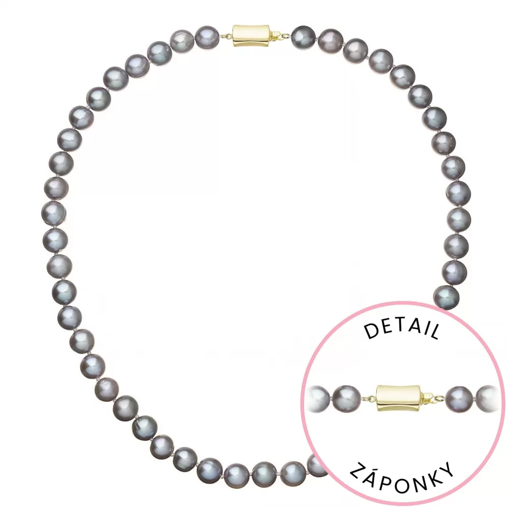 Perlový náhrdelník z riečnych perál so zapínaním zo 14 karátového zlata 922028.3/9267A grey