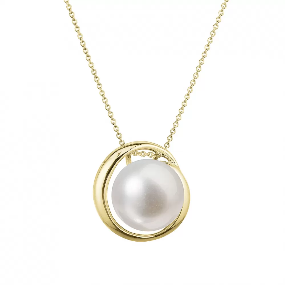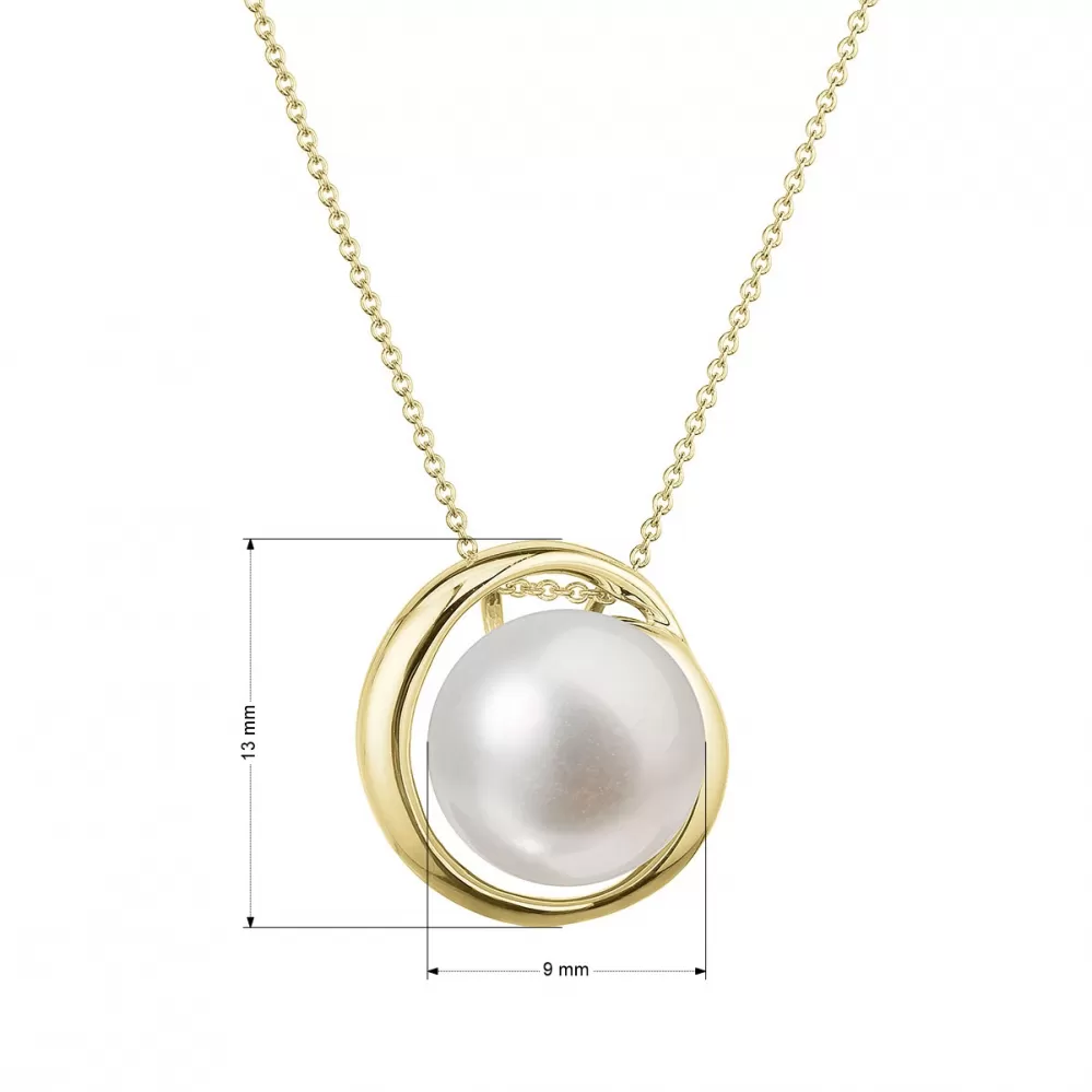 Zlatý 14 karátový náhrdelník žlté zlato s bielou riečnou perlou 92P00035