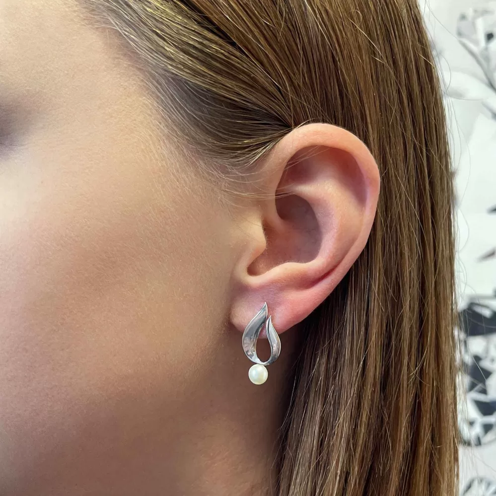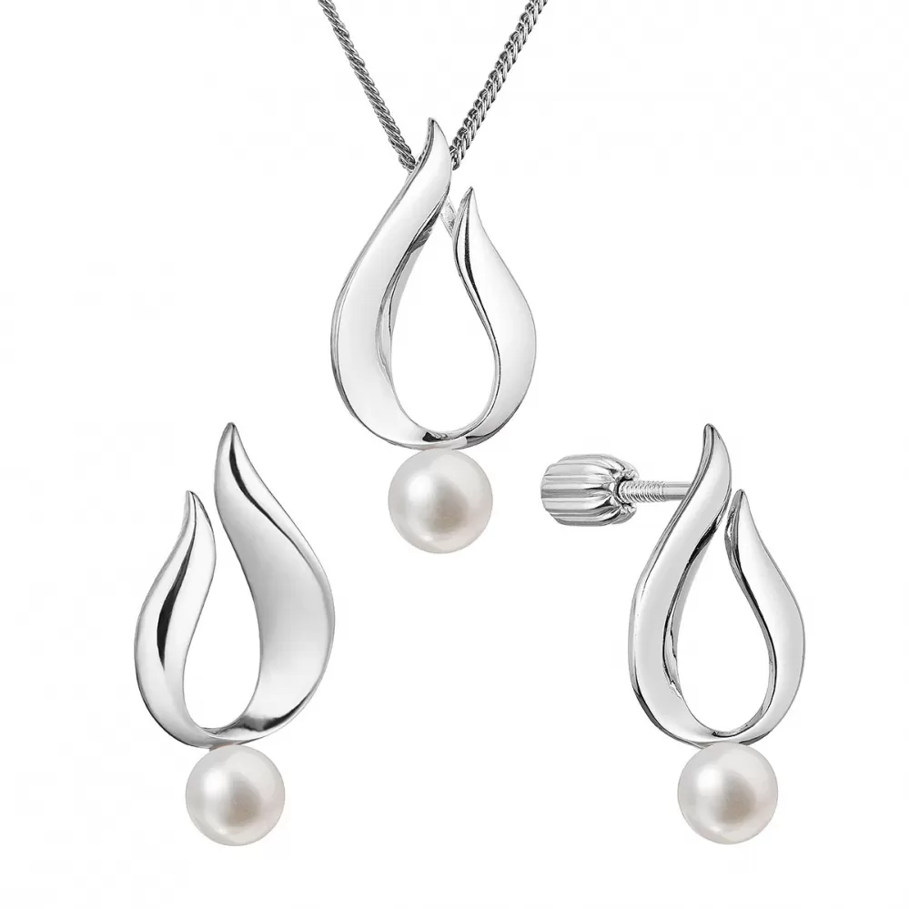 Strieborná súprava šperkov v podobe plamienkov prináša do vášho vzhľadu hru elegantných kriviek a prirodzenej krásy. Každý plamienok zdobí pravé riečne perly, dodávajúce šperkom dojem jemného luxusu.