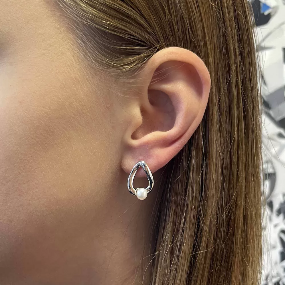 Strieborná súprava má elegantný dizajn, ktorý zdobí zaujímavý tvar zo striebra s lesklým povrchom. Malá pravá perla je vsadená nežne v dolnej časti, dodávajúc celkovému vzhľadu šarm a sofistikovanosť. Náušnice sú ľahké a pohodlné, ideálne na každodenné nosenie alebo špeciálne príležitosti.