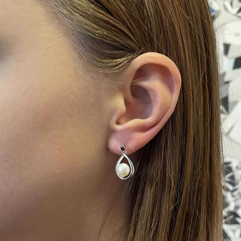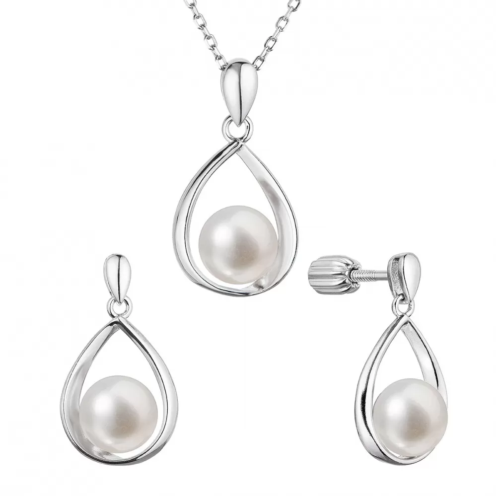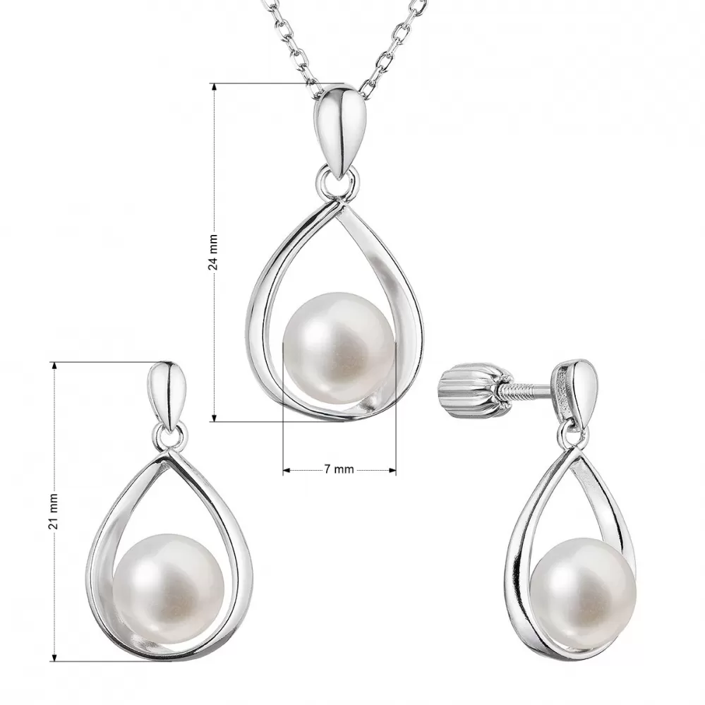 Perlová súprava slza s bielou riečnou perlou 29056.1B