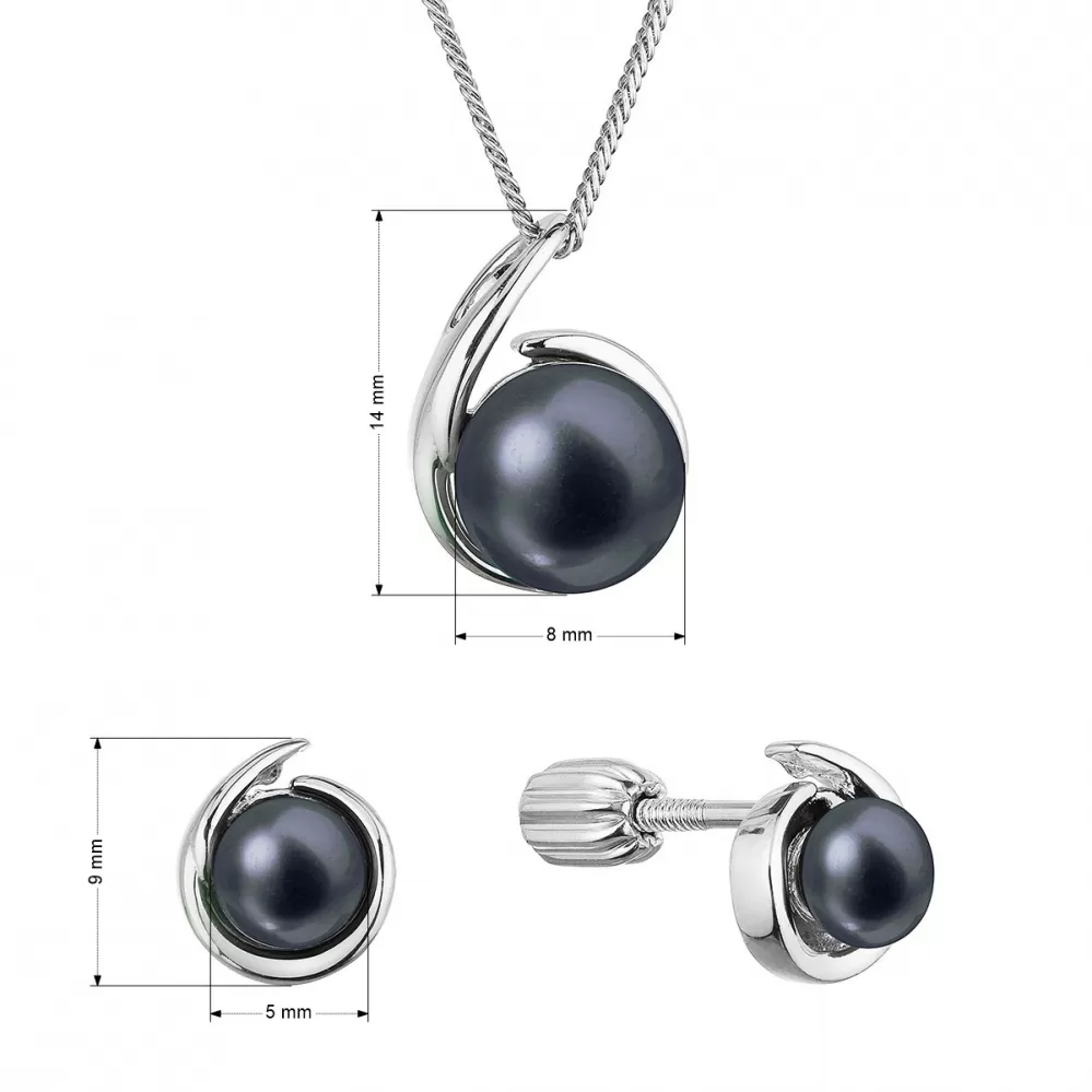 Perlová súprava slza s čiernou riečnou perlou 29063.3B black