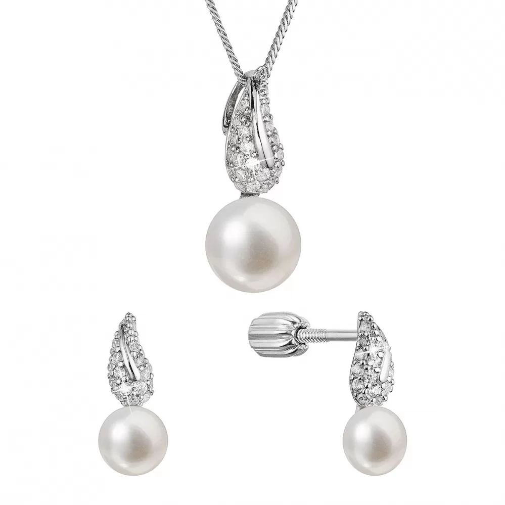 Perlová súprava so zirkónmi a bielou riečnou perlou 29059.1B