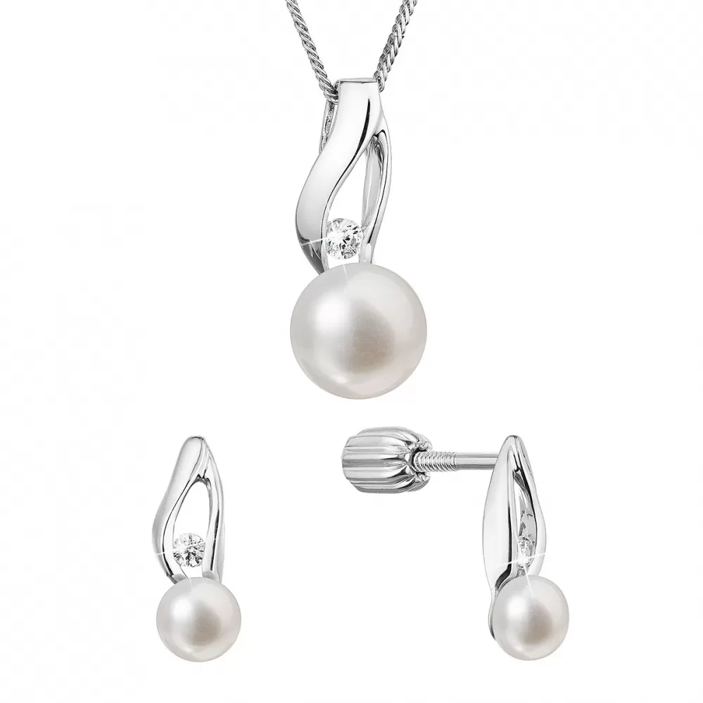 Perlová súprava so zirkónmi a bielou riečnou perlou 29070.1B