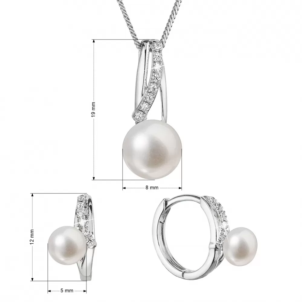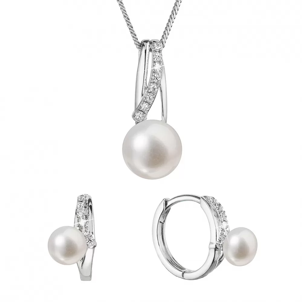 Perlová súprava so zirkónmi a bielou riečnou perlou 29074.1