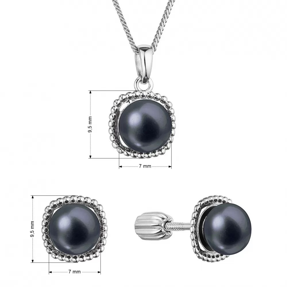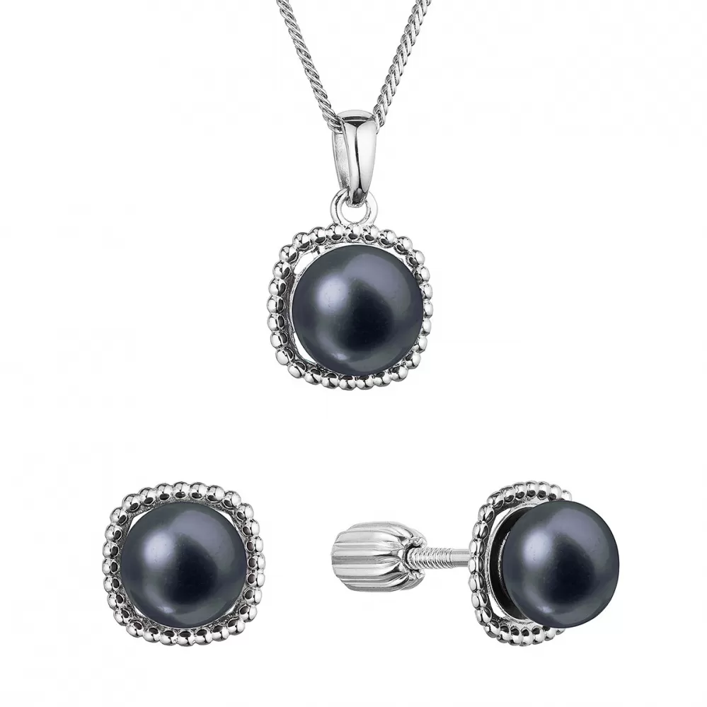 Perlová súprava štvorec s čiernou riečnou perlou 29065.3B black