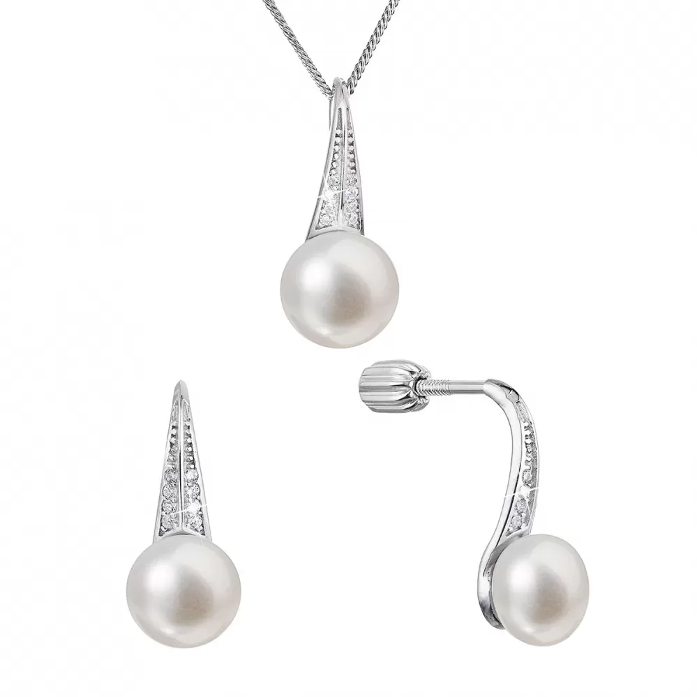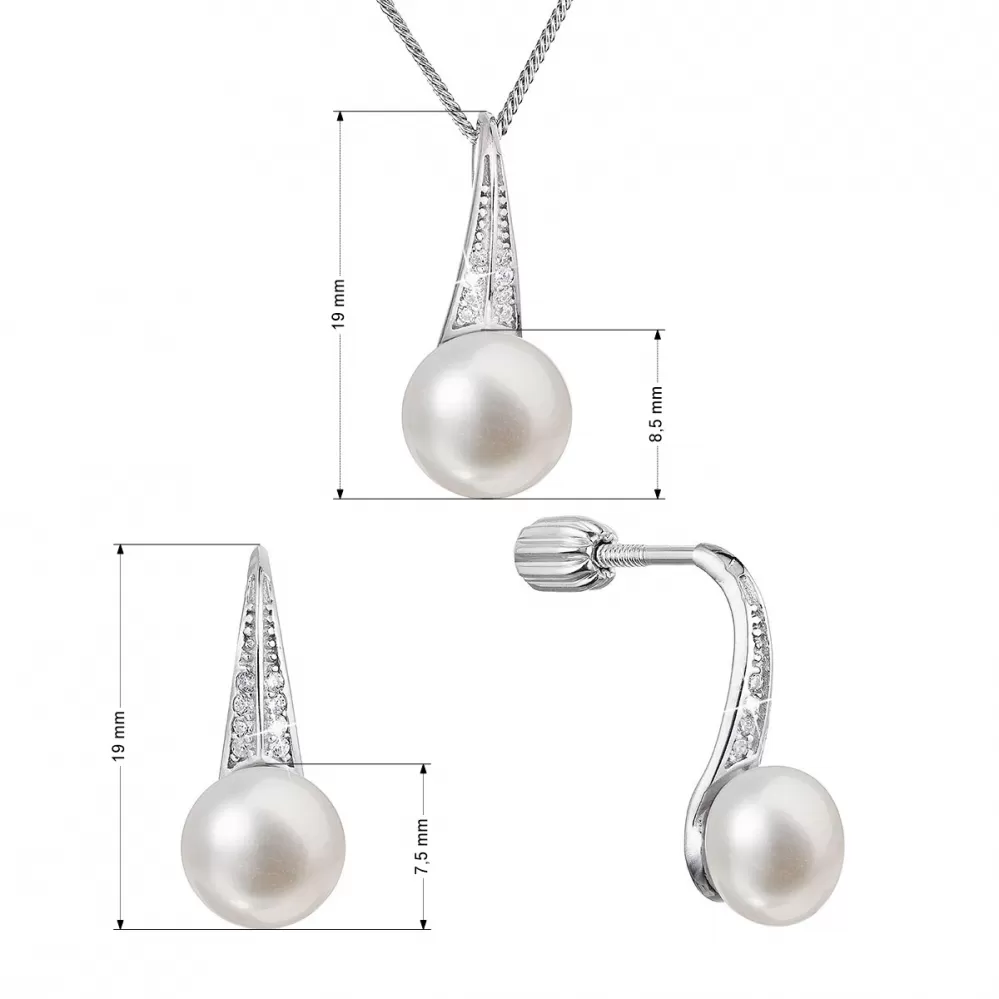 Perlová súprava z riečnych perál a zirkónov biela 29045.1B