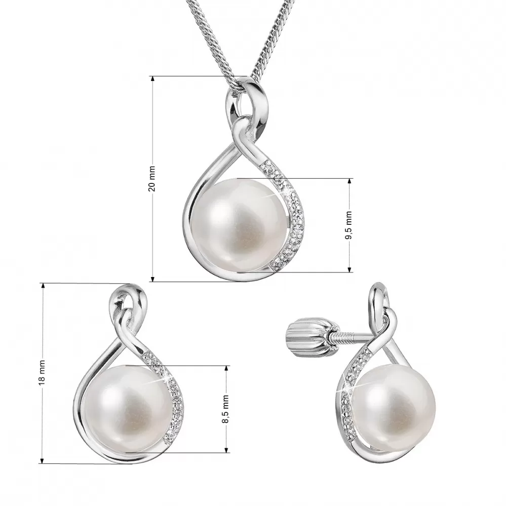 Šperky sú zdobené bielymi sladkovodnými perlami patriace do kategórie kvality AA. Perličky majú priemer 8,5 - 9,5 mm. Súprava je vyrobená zo striebra o rýdzosti 925/1000 vrátane povrchovej úpravy ródiom. Súprava šperkov 29058.1B obsahuje náušnice so zapínaním na balónik a retiazku s príveskom. Vzhľadom na to, že šperky neobsahujú nikel, nemusíte sa obávať žiadne alergické reakcie.