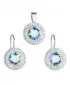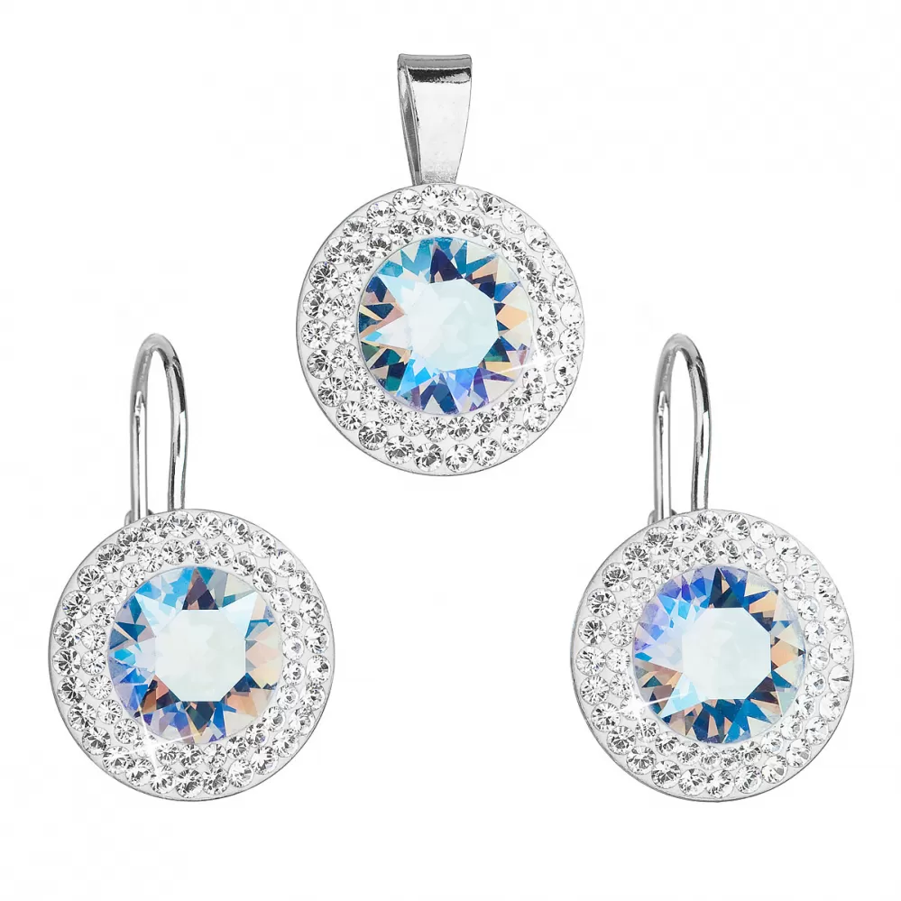 Sada šperkov 39107.3 obsahujeokrúhle visiace náušnice a prívesok v rovnakej podobe. Šperky sú zdobené  veľkým okrúhlym Swarovski kryštálom v modrej farbe, ktorý je navyše lemovaný dvoma radmi menších bielych kryštálov Swarovski. Šperky zo súpravy 39107.3 sú vyrobené zo striebra rýdzosti 925/1000 vrátane povrchovej úpravy ródiom. Ródium chráni šperk proti sčernaniu, zožltnutiu i poškriabaniu. Náušnice majú zapínanie na klapku. Keďže šperky neobsahujú žiadny prídavok niklu, môžu ich bez obáv nosiť aj alergici.