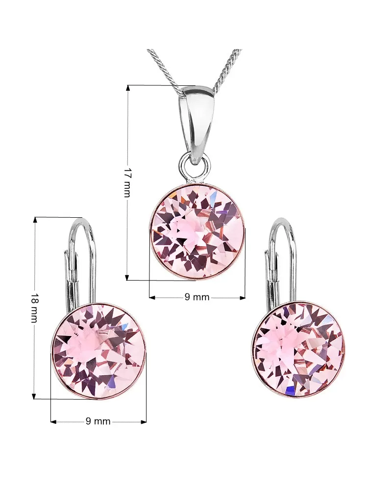 Parametre sady šperkov s kryštálmi Swarovski náušnice a prívesok ružové okrúhle 39140.3