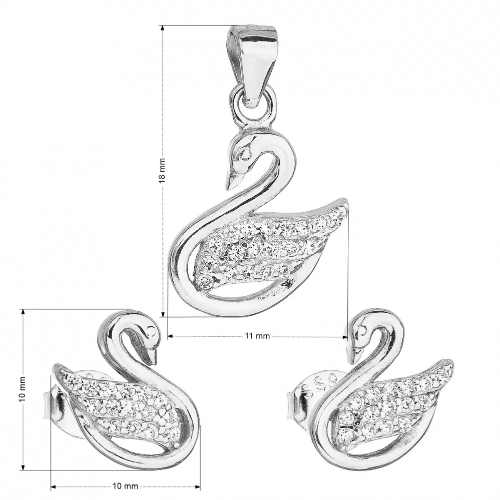 Parametre sady šperkov so zirkónom náušnice a prívesok biela labuť 19010.1