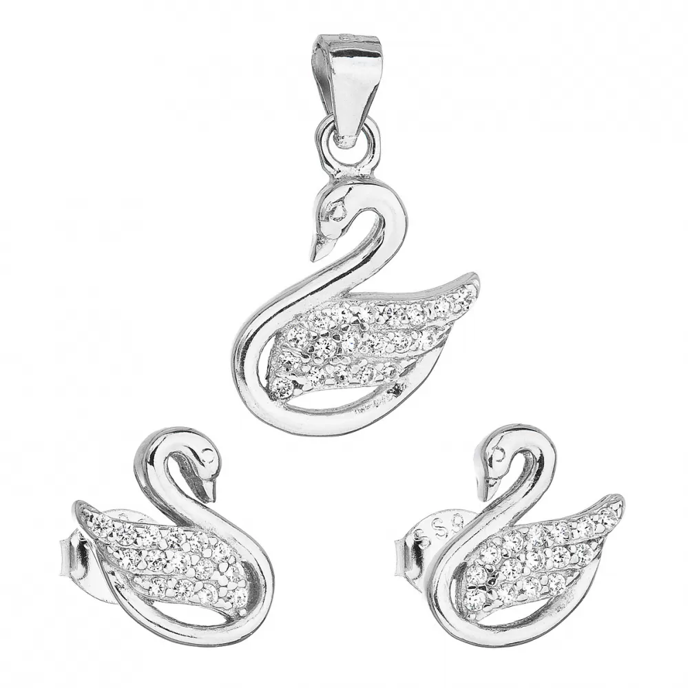 Sada šperkov so zirkónom náušnice a prívesok biela labuť 19010.1