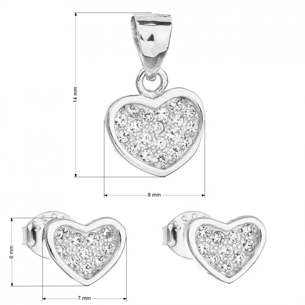 Parametre sady šperkov so zirkónom náušnice a prívesok biele srdce 19011.1