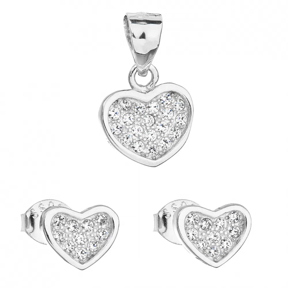 Sada šperkov so zirkónom náušnice a prívesok biele srdce 19011.1