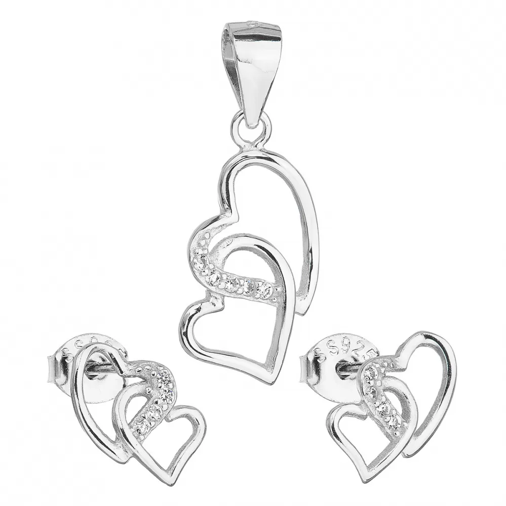 Sada šperkov so zirkónovými náušnicami a príveskom biele srdce 19015.1