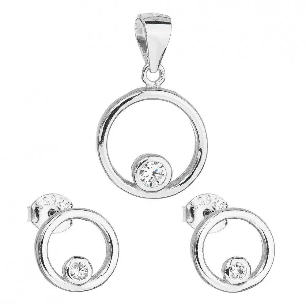 Sada šperkov so zirkónom náušnice a prívesok biely kruh 19018.1