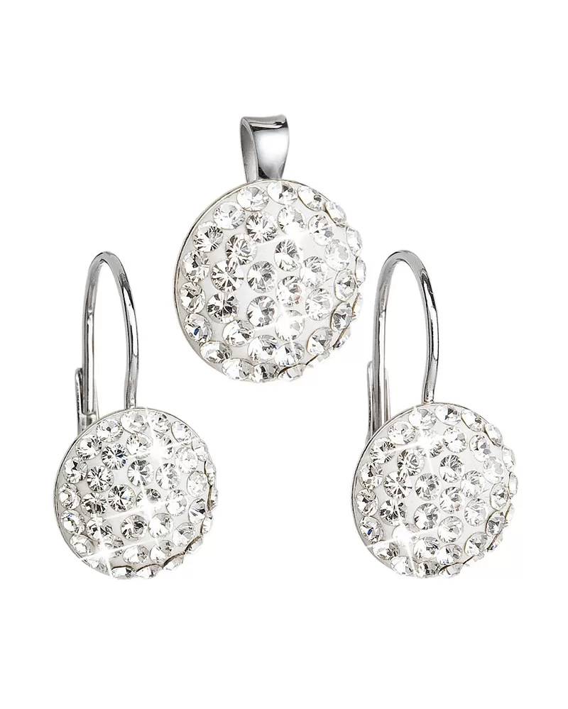 Parametre sady šperkov s kryštálmi Swarovski náušnice a prívesok biele okrúhle 39086.1