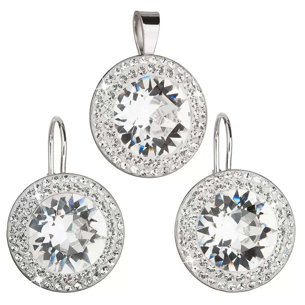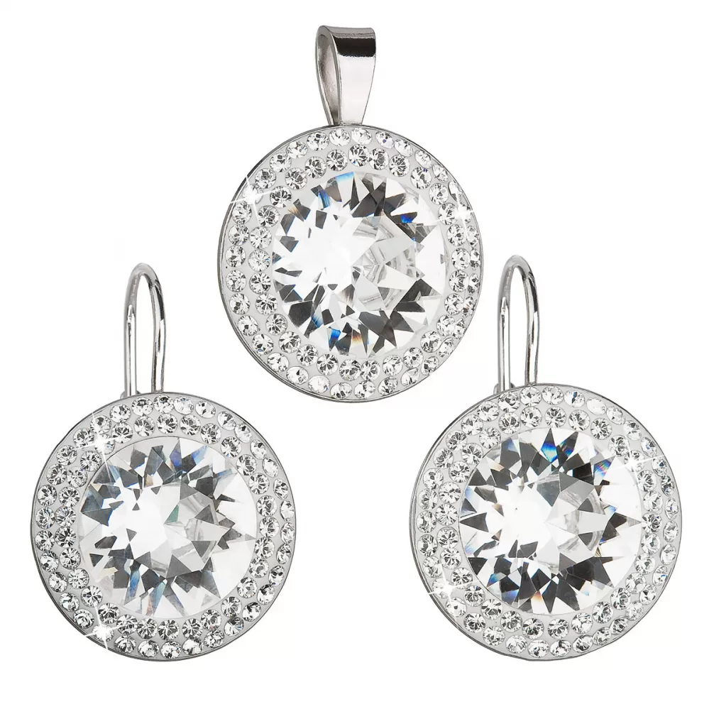 Parametre sady šperkov s kryštálmi Swarovski náušnice a prívesok biele okrúhle 39108.1