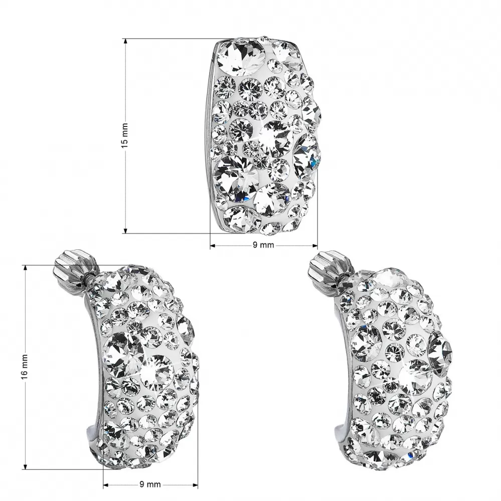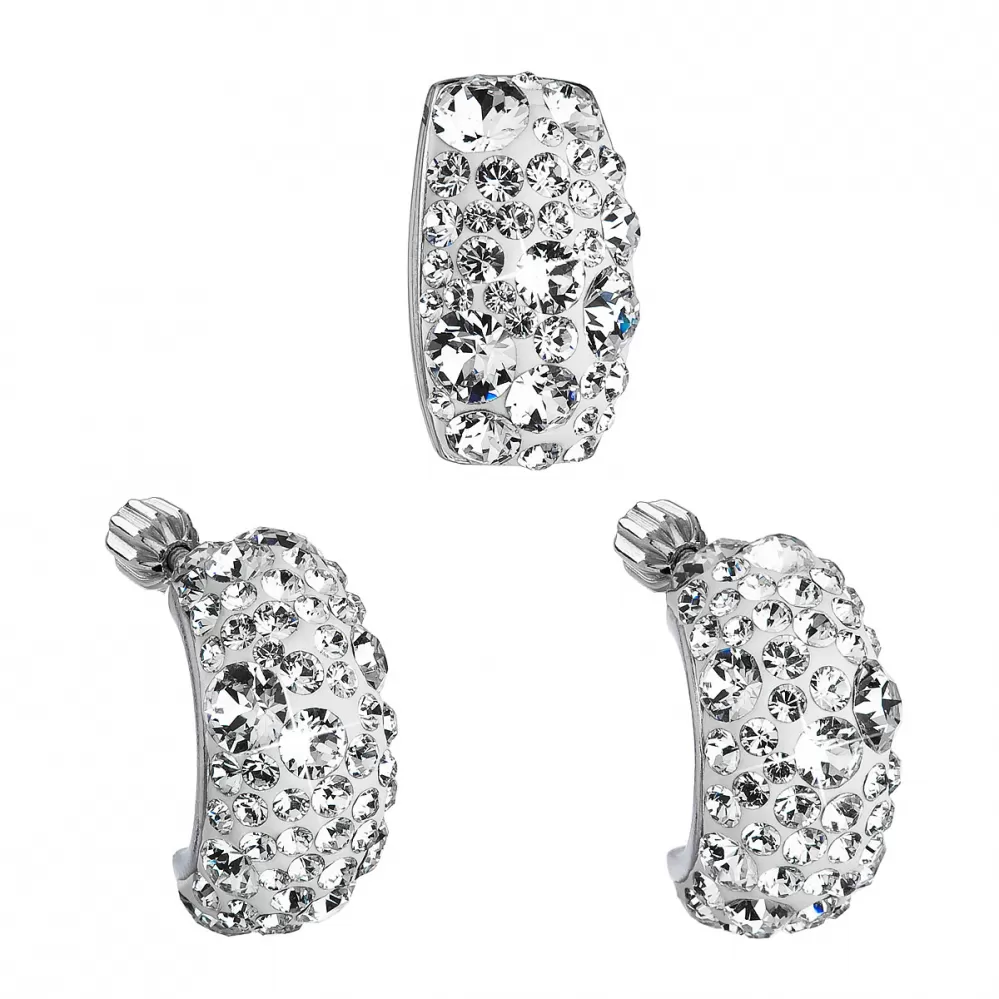 Súprava 39116.1 obsahuje pologuľaté náušnice a prívesok v tvare obdĺžnika. Šperky sú vyrobené zo striebra rýdzosti 925/1000, ktoré prešlo povrchovou úpravou ródiom. Ródium chráni šperk proti sčernaniu, zožltnutiu i poškriabaniu. Prívesok aj náušnice sú bohato zdobené trblietavými Swarovski kryštálikmi v bielej farbe. Náušnice majú zapínanie na balónik, ktorý ich spoľahlivo ochráni proti nechcenej strate. Keďže šperky neobsahujú žiadny prídavok niklu, môžu ich bez obáv nosiť aj alergici.