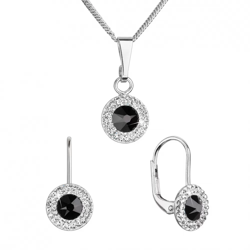 Parametre sady šperkov s kryštálmi Swarovski náušnice, retiazka a prívesok čiernej okrúhle 39109.3 jet
