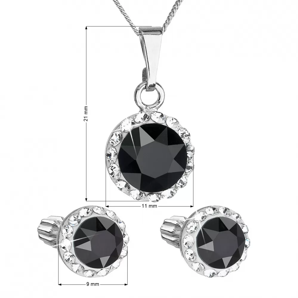Parametre sady šperkov s kryštálmi Swarovski náušnice, retiazka a prívesok čierne okrúhle 39352.3