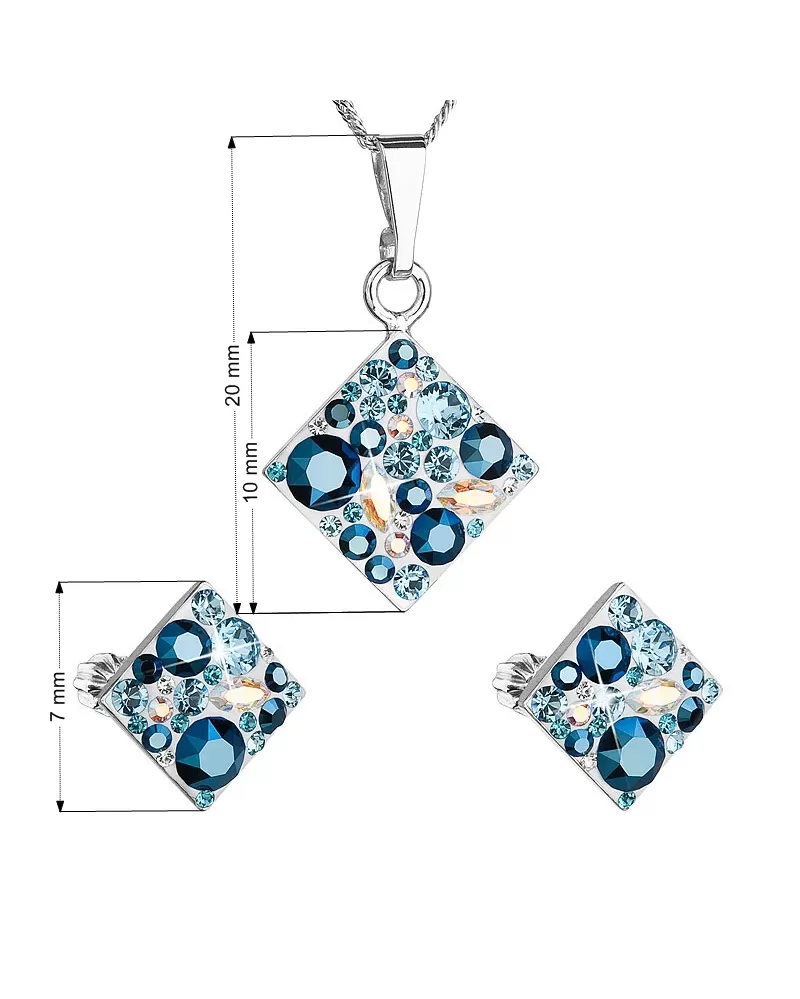 Parametre sady šperkov s kryštálmi Swarovski náušnice, retiazka a prívesok modrý kosoštvorec 39126.3 aqua