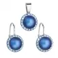 Parametre sady šperkov s kryštálmi Swarovski náušnice a prívesok s tmavo modrou matnou perlou okrúhle 39091.3
