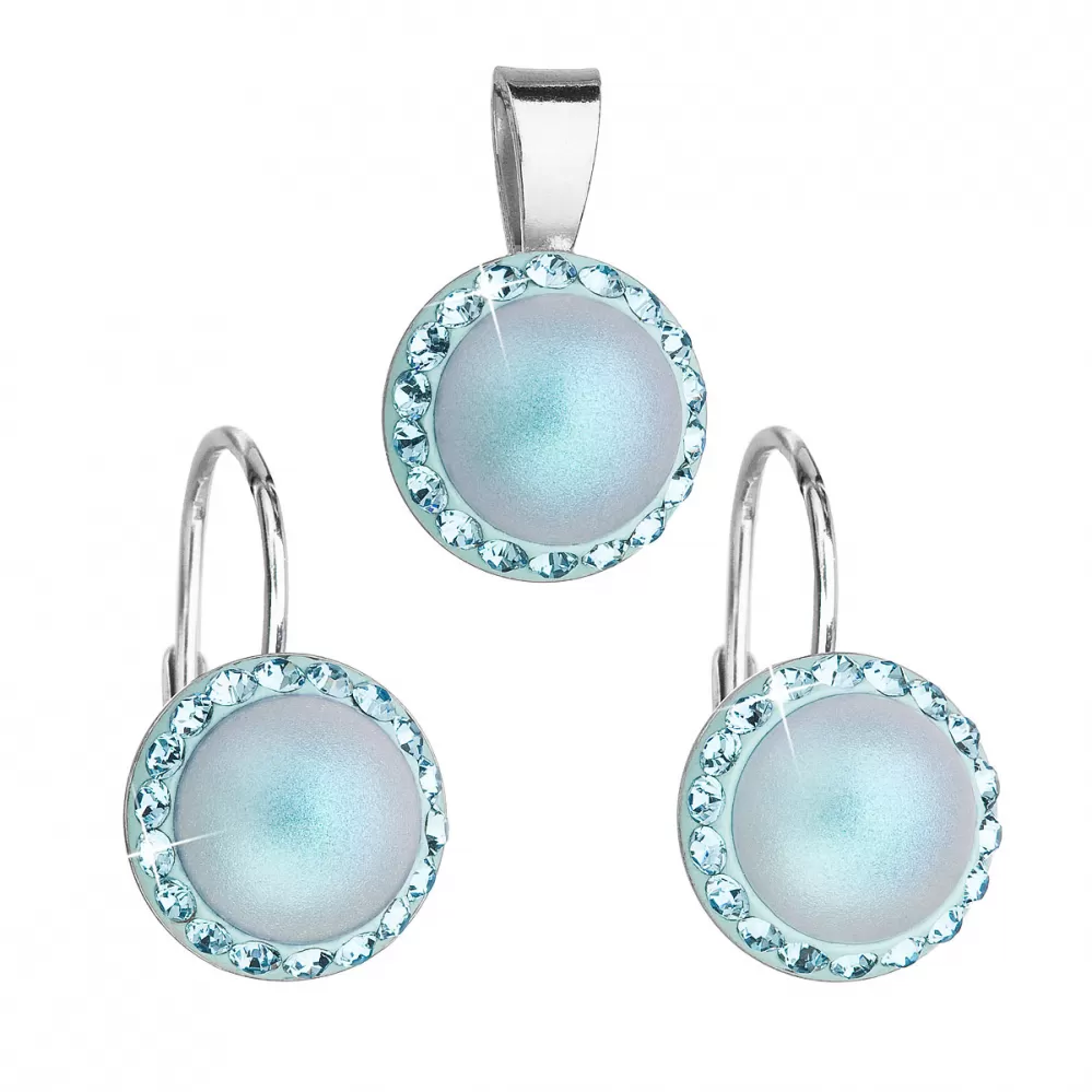 Súprava šperkov s kryštálmi Swarovski náušnice a prívesok so svetlo modrou matnou perlou okrúhle 39091.3