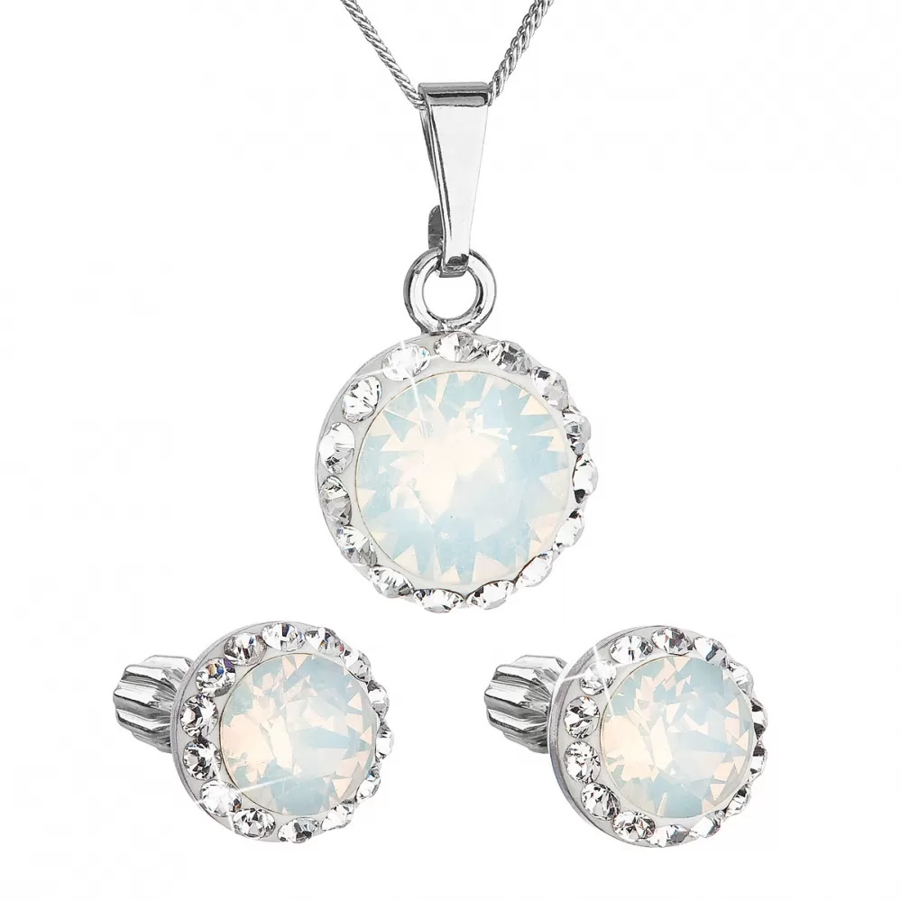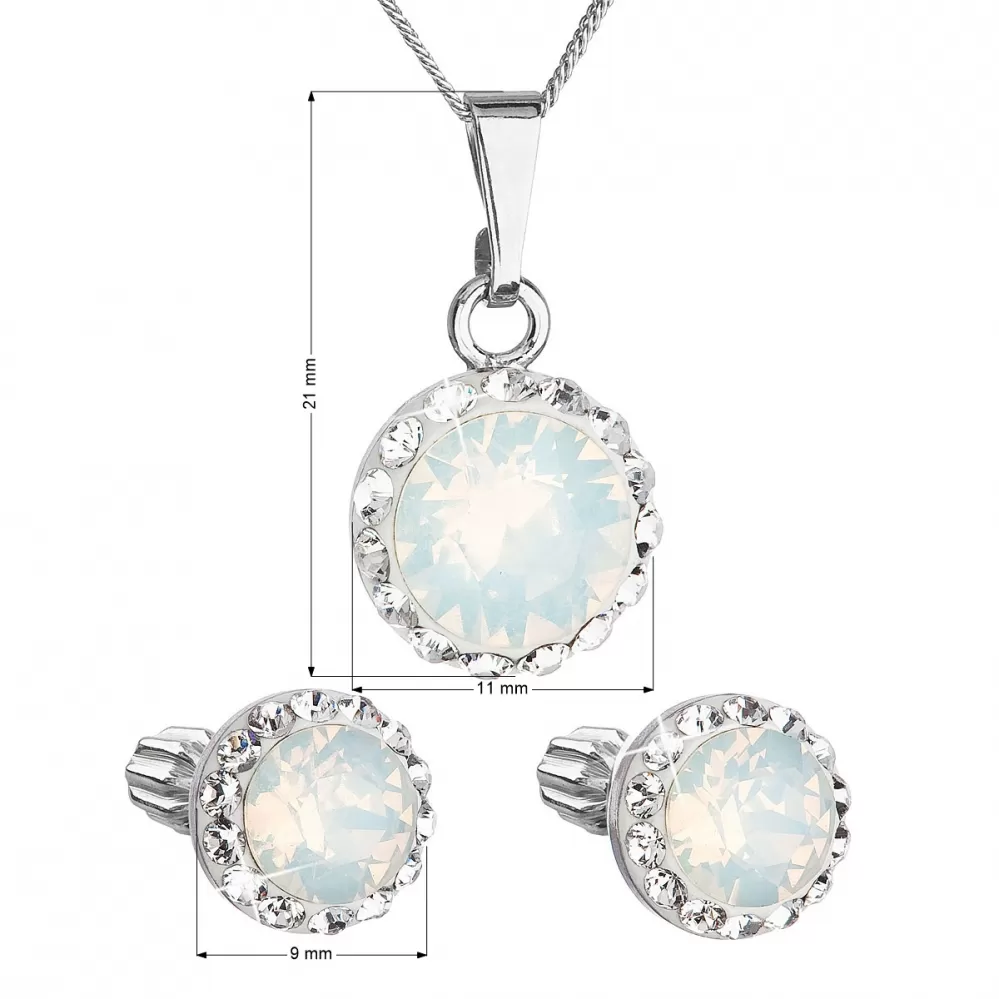 Parametre sady šperkov s kryštálmi Swarovski náušnice a prívesok biele opálové okrúhle 39352.7