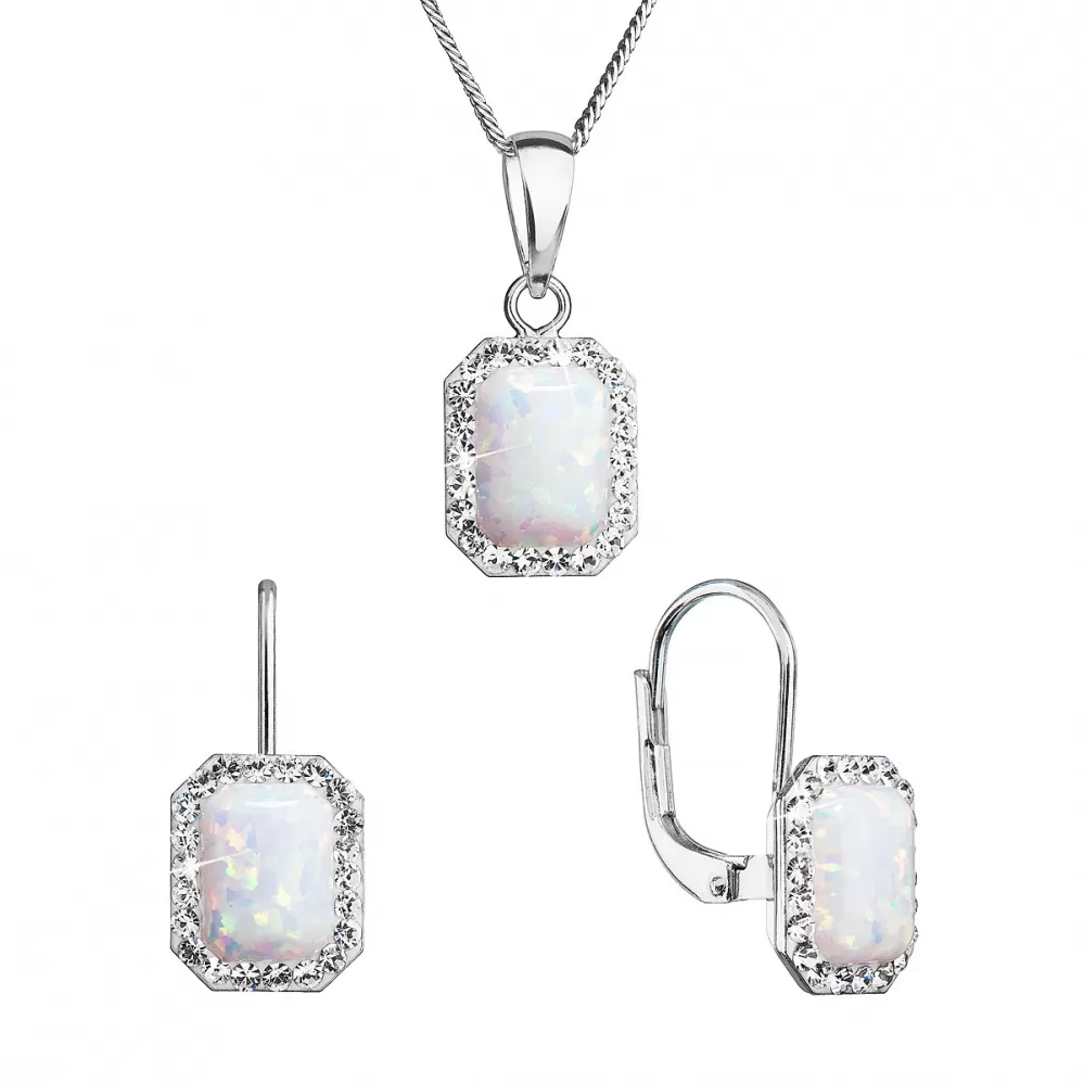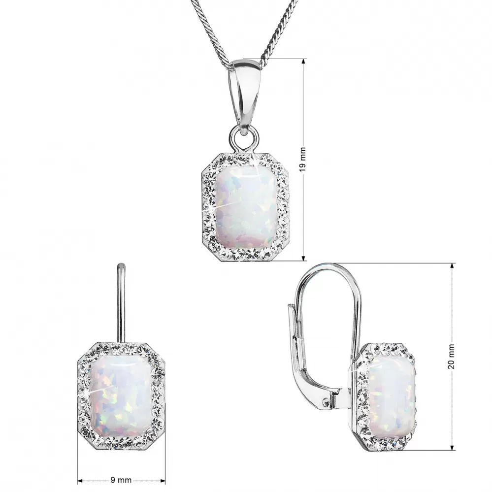 Parametre súpravy šperkov so syntetickým opálom a kryštálmi Preciosa náušnice a prívesok bielej 39175.1