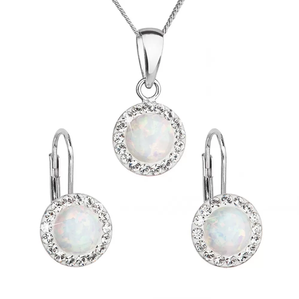 Parametre súpravy šperkov so syntetickým opálom a kryštálmi Preciosa náušnice a prívesok biele okrúhle 39160.1
