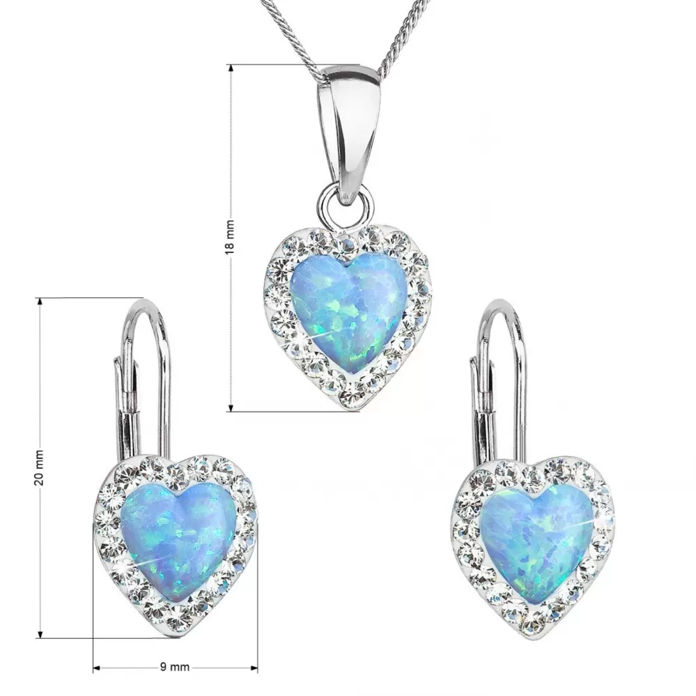 Parametre sady šperkov so syntetickým opálom a kryštálmi Preciosa náušnice a prívesok svetlomodré srdce 39161.1