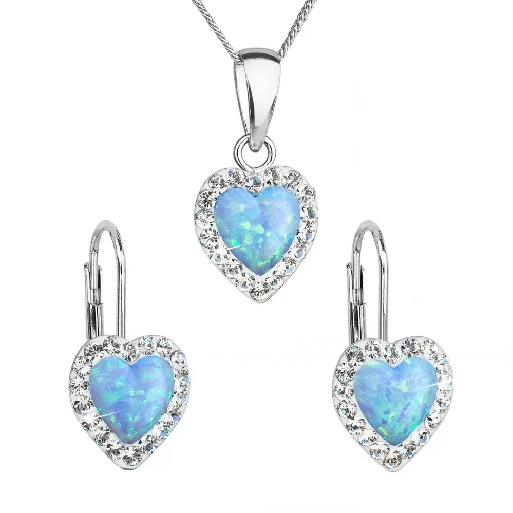 Súprava šperkov so syntetickým opálom a kryštálmi Preciosa náušnice a prívesok svetlo modré srdce 39161.1