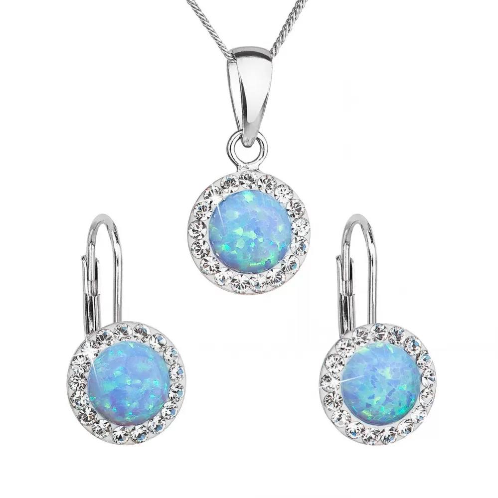 Súprava šperkov so syntetickým opálom a kryštálmi Preciosa náušnice a prívesok svetlo modrej okrúhle 39160.1