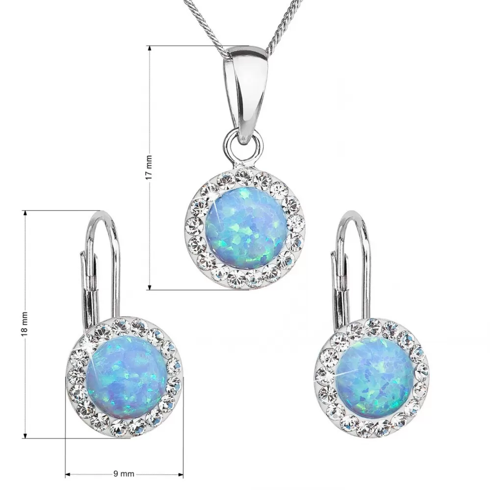 Parametre sady šperkov so syntetickým opálom a kryštálmi Preciosa náušnice a prívesok svetlo modrej okrúhle 39160.1