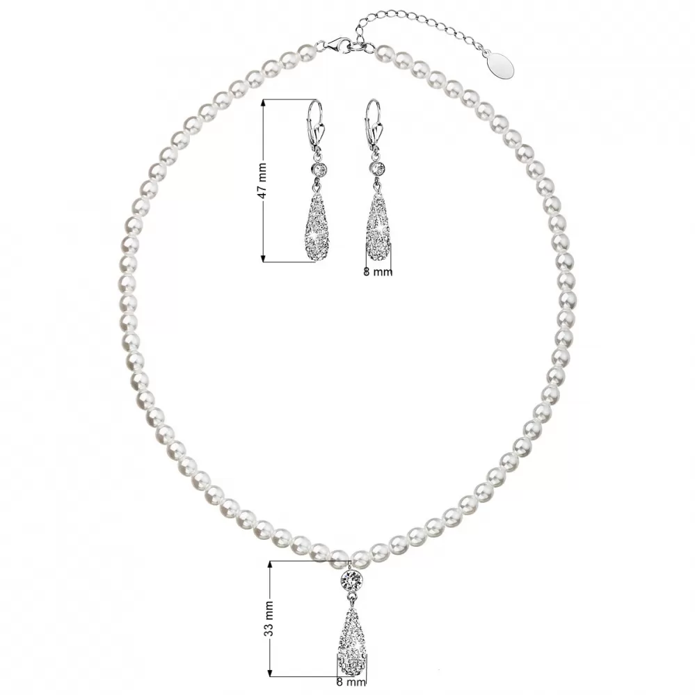 Parametre sady šperkov s kryštálmi Swarovski náušnice a prívesok bielej perly slza 39121.1