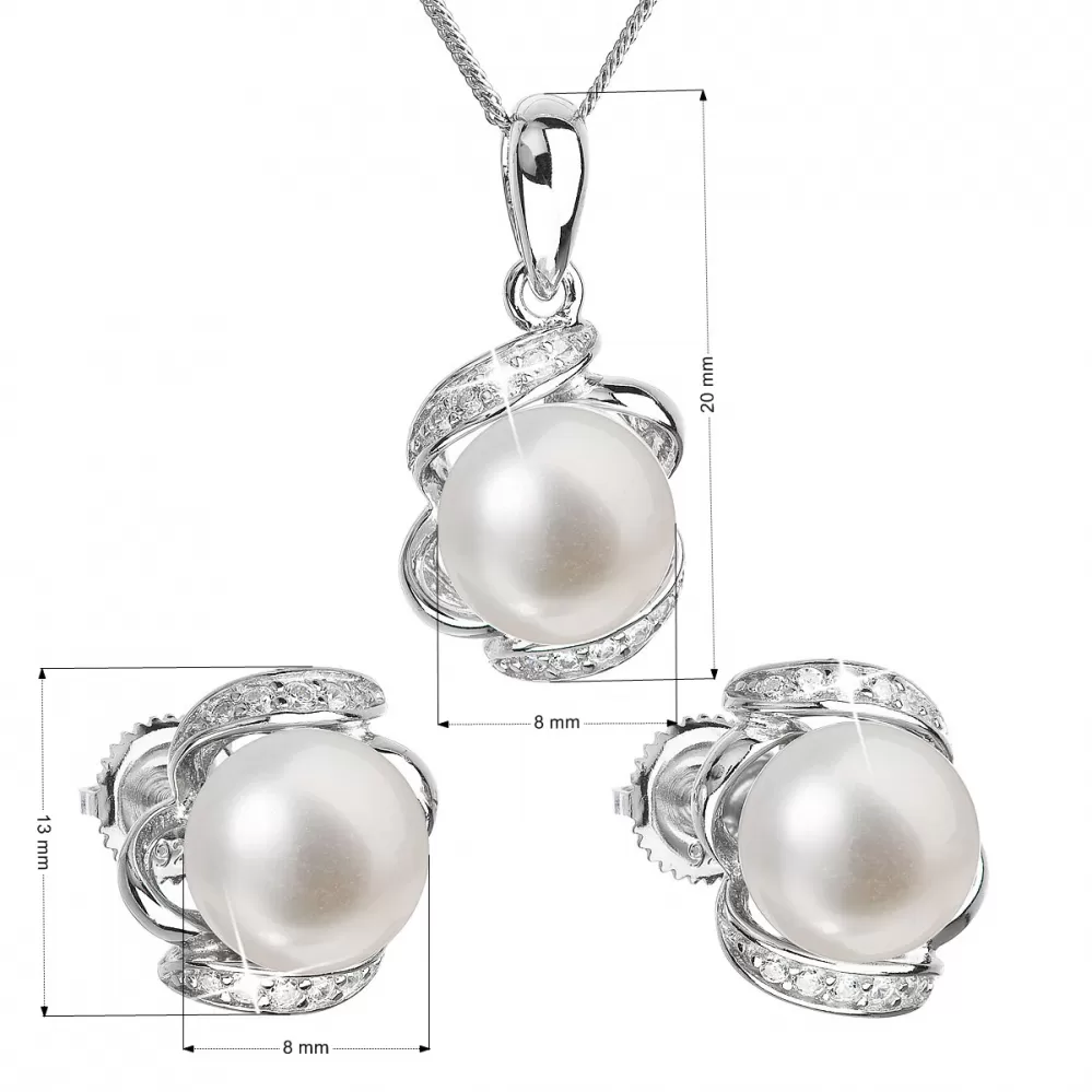 Perlovú súpravu 29017.1 oceníte najmä pre jej jednoduchosť a eleganciu. Súprava šperkov 29017.1 obsahuje okrúhle náušnice s bielymi perlami so zapínaním na skrutku anáhrdelník s perlovým príveskom. Perly, ktoré šperky zdobia, spadajú do kategórie kvality AA. aj trblietavými zirkónmi. skrášľuje celkom 10 zirkónov. Pri výrobe našich šperkov myslíme aj na alergikov, a preto nebol do súpravy pridaný žiadny nikel.