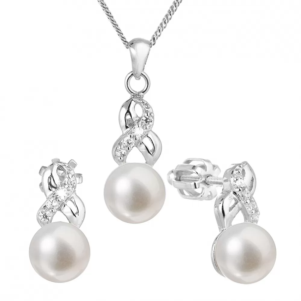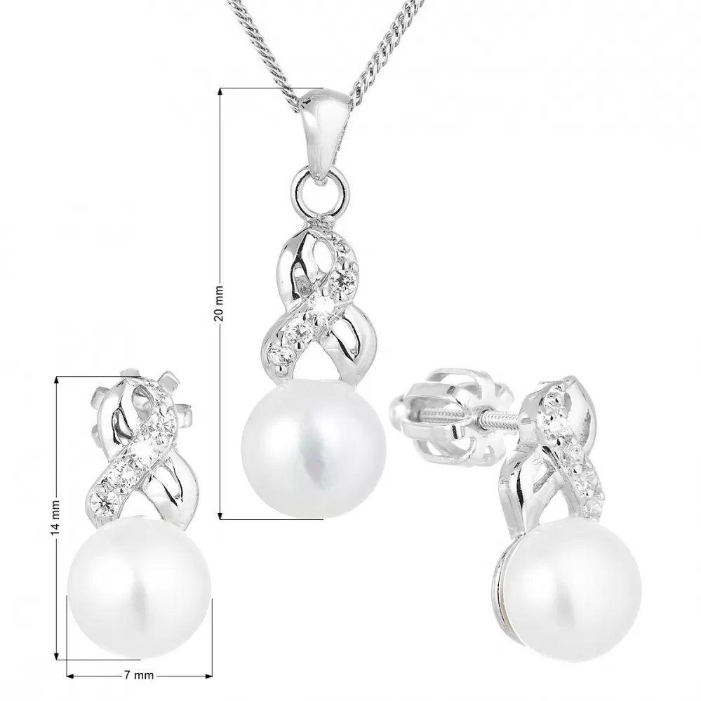 Súprava šperkov obsahuje náušnice a prívesok s retiazkou. Šperky sú zdobené riečnymi perlami najvyššej kvality AAA, ktoré ešte navyše dopĺňajú nádherne sa trblietajúce priezračné zirkóny. Šperky sú vyrobené zo striebra rýdzosti 925/1000, ktoré prešlo povrchovou úpravou ródiom. Striebro neobsahuje nikel, a tak je súprava vhodná aj pre alergikov. Náušnice sa zapínajú na balónik, ktorý ich spoľahlivo ochráni proti nechcenej strate.