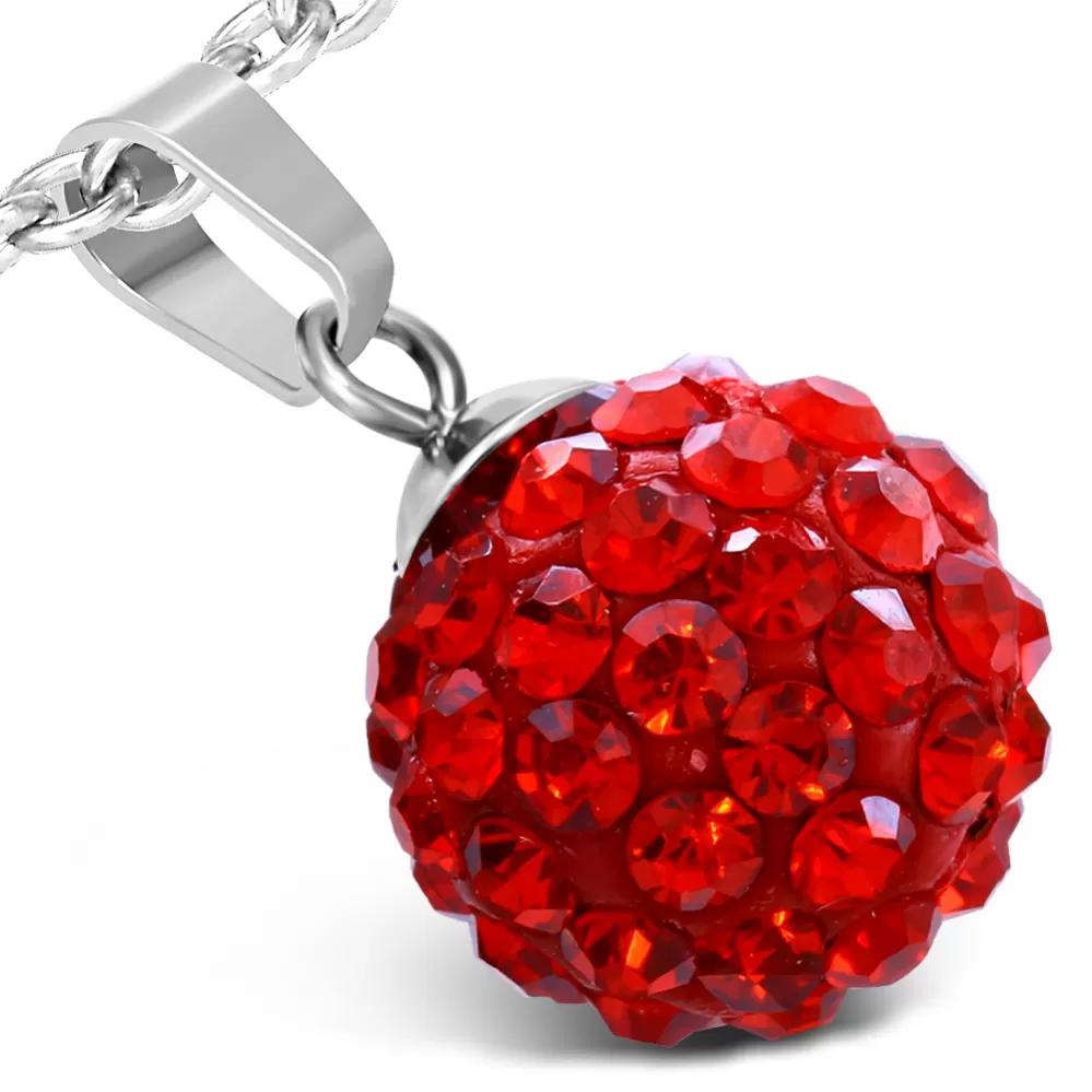Prívesok v tvare guličky je vyrobený z chirurgickej ocele v lesklej povrchovej úprave. Prívesok je celý vysadený žiarivými červenými kryštálmi, takže… Celý popis