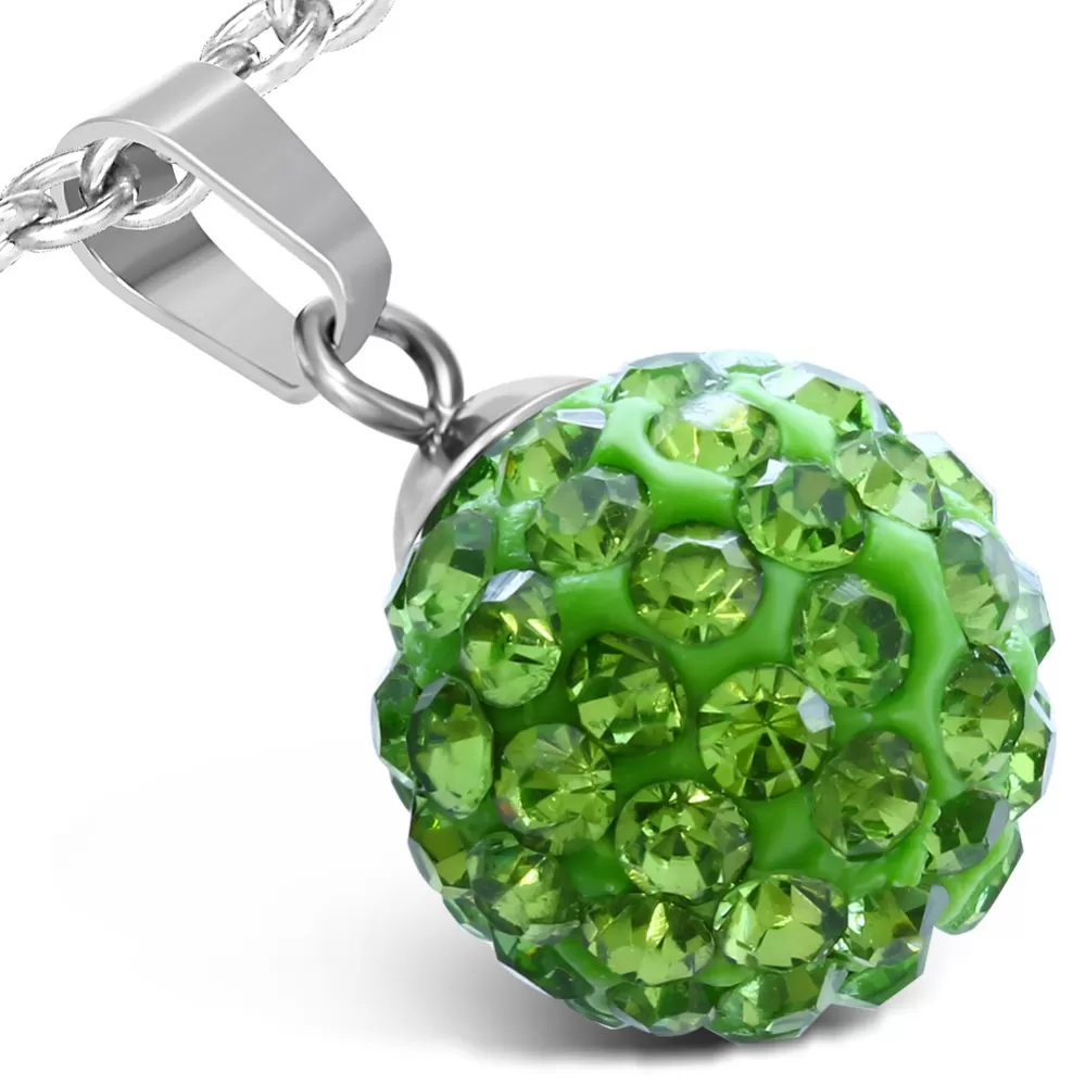 Prívesok v tvare guličky je vyrobený z chirurgickej ocele v lesklej povrchovej úprave. Prívesok je celý vysadený žiarivými zelenými kryštálmi, takže… Celý popis