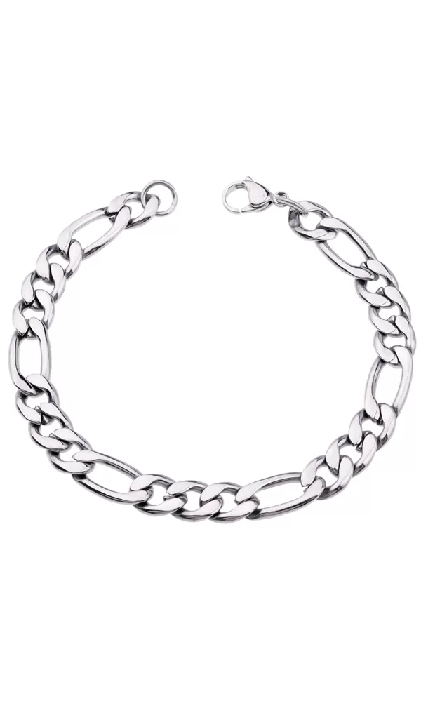 Silný náramok z ocele typu Figaro 3+1 s klasickým zapínaním na karabínu a je vyrobený v lesklej povrchovej úprave. Chirurgická oceľ vyniká svojou farebnou stálosťou a nespôsobuje alergické reakcie.
