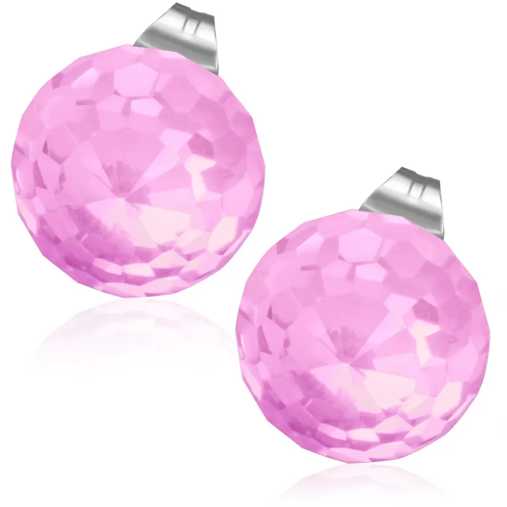 Náušnice – kôstky so skleneným kryštálom v ružovej farbe vyrobené z chirurgickej ocele v lesklej povrchovej úprave. Náušnice sa Vám budú hodiť na každú príležitosť. Zapínanie náušníc je na puzetku.
