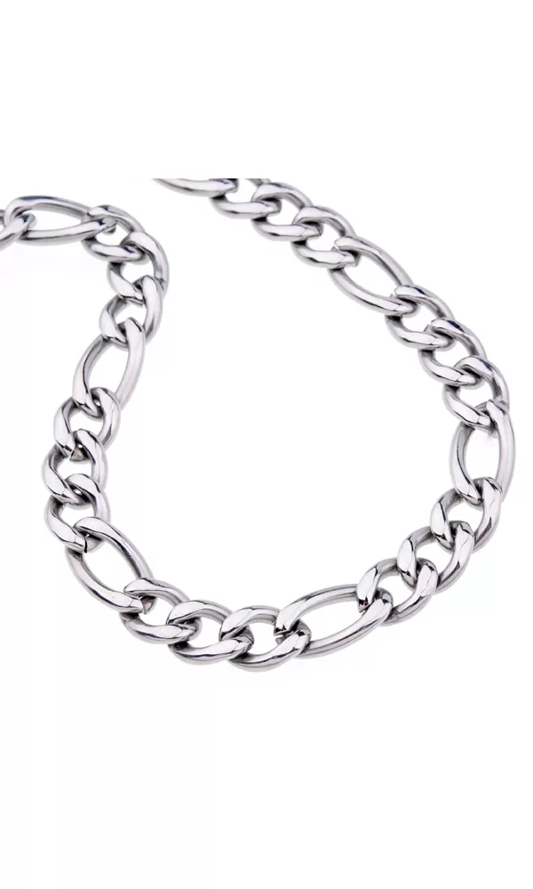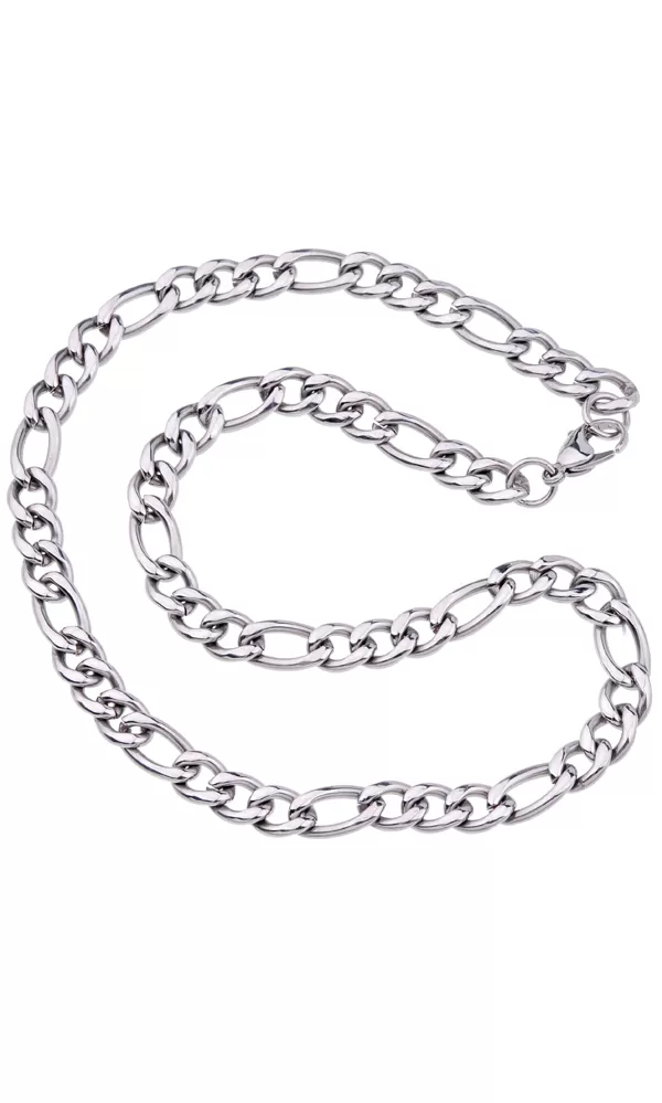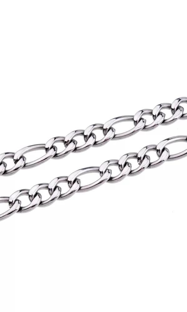 Figaro 3+1 oceľový reťazec s upevnením klasických karabínov a je vyrobený v lesklom povrchu. Chirurgická oceľ vyniká vo svojej farebnej stabilite a nespôsobuje alergické reakcie.