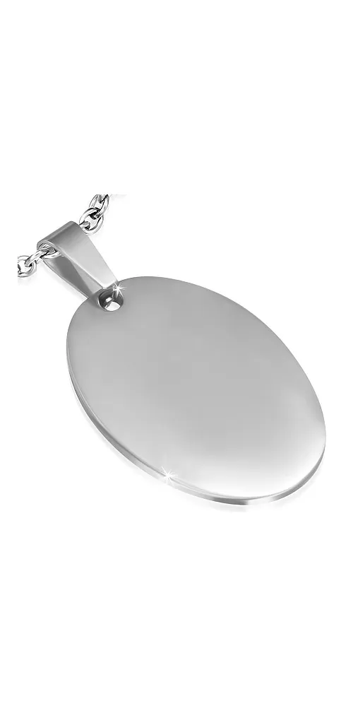 Oválny prívesok vyrobený z chirurgickej ocele je skvelý nápad ako obdarovať vašich najbližších. Destička je z prednej strany lesklá a na zadnej strane je v mate. Na doštičku na prednú alebo zadnú stranu prívesku je možné vyryť vami vybraný text ako je napr. meno alebo písmeno. Opis rytiny prosím uveďte v kolónke špeciálne požiadavky. Rytina zaručene poteší a milo prekvapí. Je to veľmi oroginálny darček.