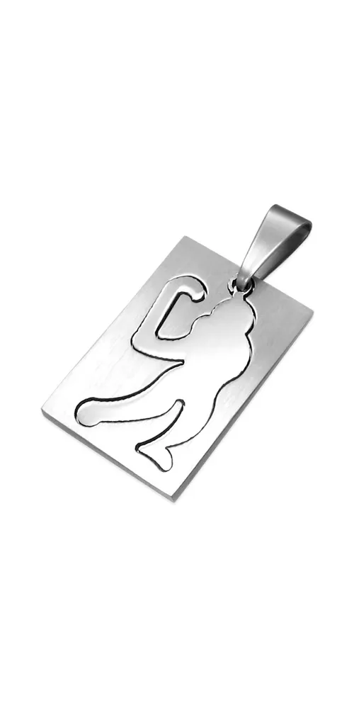 Prívesok doštička je vyrobený z chirurgickej ocele v lesklej povrchovej úprave.