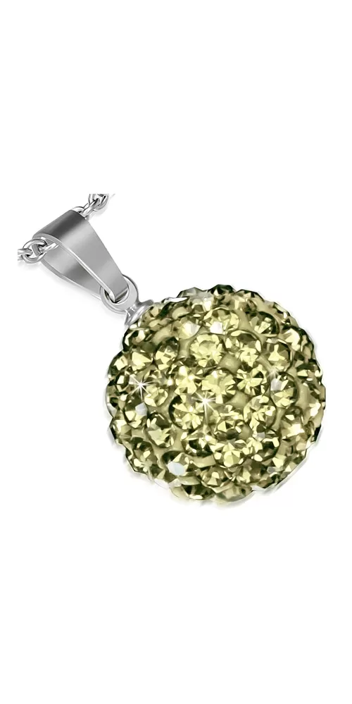 Veľmi pekný moderný prívesok v tvare guličky posádzanej po celom svojom obvode so žltými zirkónmi je vyrobený z chirurgickej ocele v lesklej povrchovej úprave. K tomuto prívesku je možné dokúpiť retiazku o max. priemere 3,75 mm.